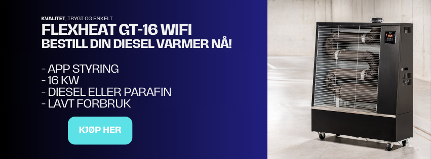 FlexHeat GT-16 WIFI – Bestselger med smart styring! Opplev rask, effektiv og kostnadsbesparende oppvarming med vår toppmodell varmeovn – nå med WIFI og app-styring for maksimal komfort og kontroll. Med et lavt støynivå på kun 48 dB og ren forbrenning , kan FlexHeat GT-16 plasseres innendørs uten behov for avtrekk. Perfekt for verksted, garasje eller andre arbeidsområder der både varme og sikkerhet er avgjørende. Denne varmeovnen er utstyrt med avansert sikkerhetsteknologi : ✅ Overopphetningsvern ✅ Veltesikring ✅ Autostopp ved flammeutklipp ✅ CE og RoHS-godkjent I tillegg får du fjernkontroll og app-styring via WIFI , slik at du enkelt kan justere temperaturen fra hvor som helst. Hvorfor velge FlexHeat GT-16 WIFI? Kraftig ytelse: Hele 16 kW varmeeffekt Stor kapasitet: 50 liters tank – dekker opptil 150 m² Fleksibel drift: Bruk diesel eller parafin Smart styring: WIFI og fjernkontroll inkludert Tekniske spesifikasjoner: Strømforbruk: 80 W (220V/50Hz) Ytelse: 16 kW Egnet brensel: Diesel eller parafin Drivstofforbruk: 1,27 l/t Tank: 50 liter Kapasitet: 150 m² Støynivå: 48 dB Størrelse: 1100 x 950 x 305 mm Vekt: 50 kg Sertifisering: CE og RoHS