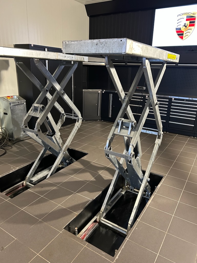 Høytløftende sakseløfter – Galvanisert for nedfelling (Tilsvarende M8) Denne høytløftende sakseløfteren i galvanisert utførelse er utviklet for nedfelling i gulv og er spesielt godt egnet for fuktige miljøer som vaskerom, kystnære verksteder og industrielle omgivelser. Den solide konstruksjonen med to separate sakser , hver utstyrt med kraftig hydraulikksylinder og mekanisk lås , gir høy stabilitet, sikkerhet og svært god tilgang under kjøretøyet. Løfteren leveres med dobbelt uttrekk , som gir økt rekkevidde og fleksibilitet. Utskyvet kan enkelt demonteres, slik at løfterens mål tilsvarer vår M6‑modell , og kan dermed brukes i eksisterende utsparinger til M6 eller tilsvarende løftere. En svært praktisk funksjon er muligheten til å kjøre kun én av saksene , noe som gjør løfteren velegnet som MC‑løfter, arbeidsbord eller til andre spesialapplikasjoner . Robust og komplett levert Løfteren leveres komplett med: Gummiklosser Ekspansjonsbolter Galvanisert kontrollboks Alt er inkludert bortsett fra hydraulikkolje . Løfteren krever 15 liter hydraulikkolje , type ISO VG 32 eller 46 . De pneumatisk deaktiverbare låsene gir enkel og trygg betjening, mens nøye utvalgte komponenter sikrer lang levetid og høy kvalitet . Produktfordeler ✅ Galvanisert utførelse – ideell for fuktige miljøer ✅ Høytløftende sakseløfter for nedfelling ✅ Dobbelt uttrekk for større plattform og rekkevidde ✅ Mulighet for singel‑saks drift (MC / arbeidsbord) ✅ Svært enkel installasjon ✅ CE‑godkjent og leveres med samsvarserklæring ✅ Pneumatisk frikobling av sikkerhetslåser ✅ Solid og profesjonell verkstedkvalitet Tekniske spesifikasjoner Kapasitet: 3 500 kg Maks løftehøyde: 2 150 mm Minimumshøyde: 330 mm Lengde plattform: 1 640 – 2 000 mm Singel plattformbredde: 550 mm Avstand mellom plattformer: 800–850 mm (justerbar) Total bredde: 1 900 mm Løftehastighet: ca. 60 sek (justerbar) Hydraulikktank: 15 liter Strøm: 230 V / 50 Hz – krever 16A C‑kurs Vekt: 850 kg