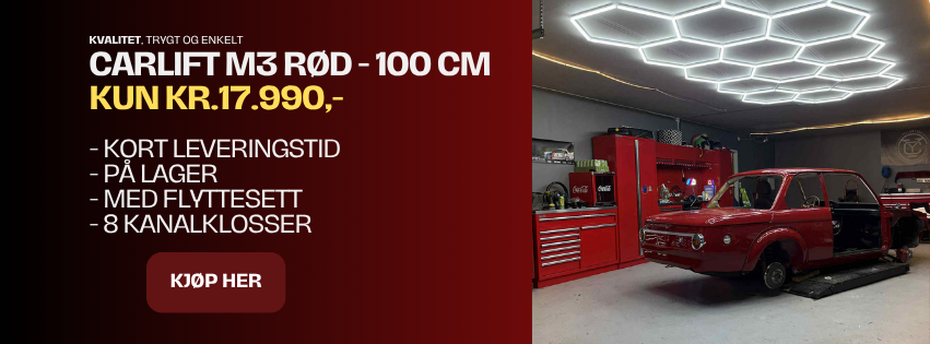 Carlift SL-3500-1.2 M7 GEN 2 – Nyhet med ekstra løftehøyde, større plattformer og forsterket design! Forskjellen på M7 og M3 er større plattformer, litt breiere med sine 1910mm og 20cm ekstra løftehøyde. Så om du synes standard løfteren på 1m er akkurat litt lav, så er denne perfekt. M7 er også 15cm lengre en sine forgjengere, dermed passer denne ypperlig til dei litt større bilene, da den gir lenger kanalpunkt rekkevidde. Dette betyr også at denne løfteren kan være litt lang for dei minste bilene, da rampene kan komme i konflikt med hjul under løft. I dei aller fleste tilfeller, løses dette med å hengsle av rampene. Er du i tvil om din bil passer, mål minste avstand fra hjul til hjul. En komplett løftebukk med alt du trenger, pakken inkluderer Hjulsett for enkel flytting av løfteren og gummiklosser for bruk under løft. 100% elektrisk løftebukk, hvor man slipper trykkluft til låsemekanismen som mange andre modeller behøver. M7 har trinnvis låsing, den trenger ikkje kjøres helt opp for sikker bruk, noe som er en fordel i garasjer med begrenset takhøyde. Bukken er også utstyrt med pendeloppheng, dette fører til god stabilitet og styrke også i starten av løftet. Denne kan kjøpes i Galvanisert utførelse: Carlift G7 Hva er nytt med GEN 2? ✅ Forsterkede bunnrammelåser ✅ Forsterket rampe med lås ✅ Ny toppramme for økt stabilitet ✅ Ny senkeventil for presis kontroll Hvorfor velge M7-modellen? Større plattformer: 1910 mm total bredde for bedre stabilitet 20 cm ekstra løftehøyde: Totalt 1,2 m , perfekt hvis standard 1 m er for lav 15 cm lengre konstruksjon: Gir bedre rekkevidde for større biler Trinnvis låsing: Sikker bruk selv ved lavere høyder – ideelt for garasjer med begrenset takhøyde Pendeloppheng: Maksimal styrke og stabilitet fra start til slutt Galvanisert utførelse tilgjengelig for ekstra beskyttelse Enkel installasjon og mobilitet: Kan felles ned i gulv eller brukes frittstående Leveres med hjulkitt for enkel flytting 100 % elektrisk – ingen trykkluft nødvendig Komplett pakke – alt inkludert: ✅ Hjulsett for mobilitet ✅ Gummiklosser for trygg løfting Tekniske spesifikasjoner: Kapasitet: 3500 kg Løftehøyde: 1200 mm Minimum høyde: 110 mm Lengde: 1550–2135 mm Plattformbredde: 530 mm (hver) Avstand mellom plattformer: 850 mm Total bredde: 1910 mm Løftehastighet: 45 sek (justerbar) Oljebehov: 9 L (olje kjøpes separat) Strøm: 230 V / 50 Hz (krever 16 A kurs) Vekt: 625 kg Tilbehør: Olje Rampe Bjelkeadapter Senterplate for nedfelling Alternativer: Carlift M3W Carlift M3