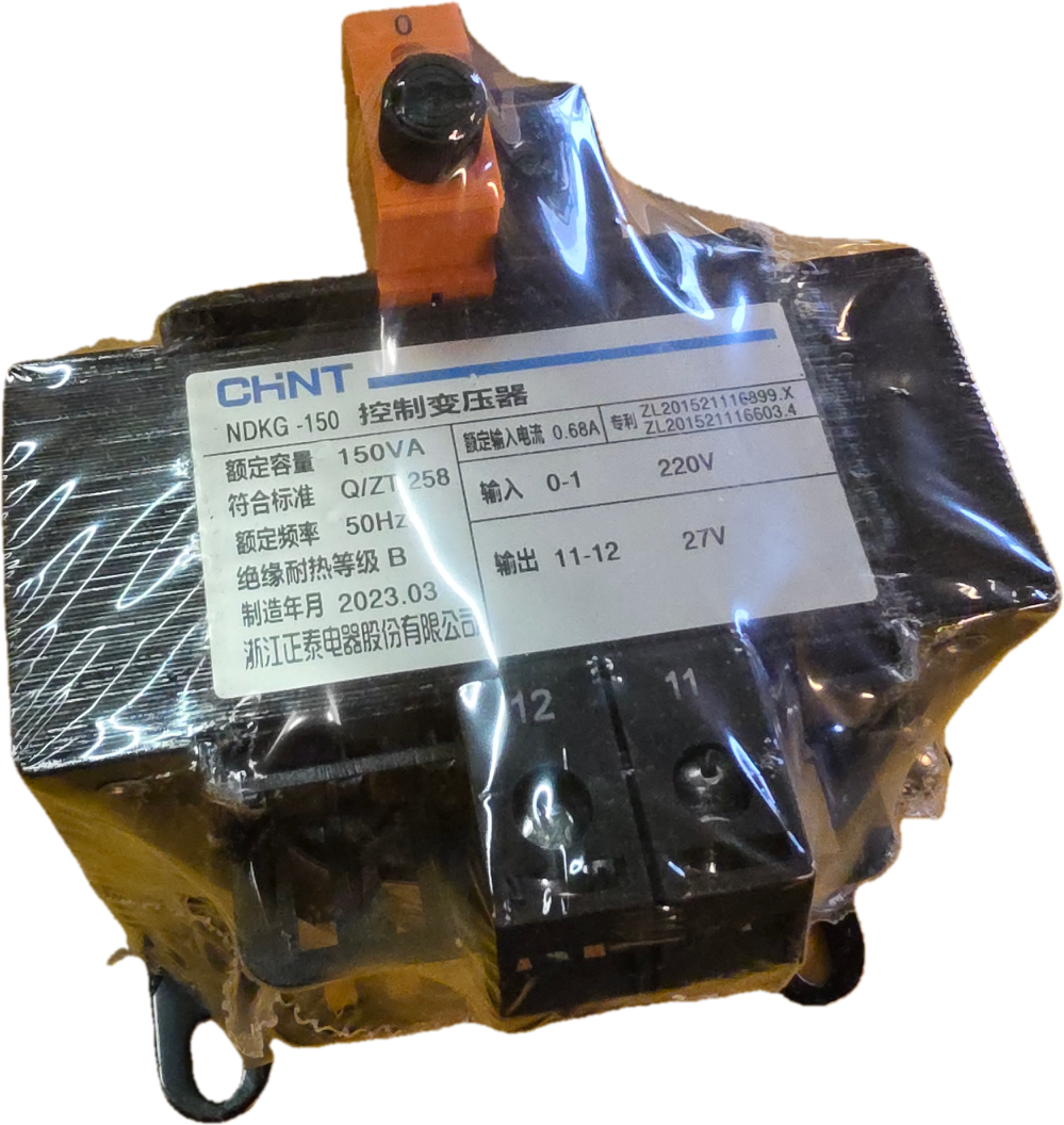 CHINT NDKG‑150VA kontrolltransformator, beregnet for bruk i industrielle styrings- og automasjonsanlegg. Dette er ein robust og driftssikker transformator som gir stabil forsyning til kontrollkretser og lavspenningsutstyr.